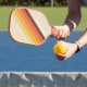 Retro Stripes Pickleball Paddle, a perfect blend of classic style and modern performance. This paddle is designed to evoke a sense of nostalgia while delivering exceptional playability on the pickleball court. With its retro-inspired stripes pattern, this paddle captures the essence of vintage aesthetics. The clean lines and bold colours create a visually striking design that is sure to turn heads and make a statement. Whether you're a fan of retro fashion or simply appreciate timeless design, this paddle brings a touch of nostalgia to your pickleball game.