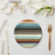 This design features horizontal stripes in various vintage colours, such as brown, orange, beige, blue, black, grey and white. It really conjures up the style of the mid 20th century.