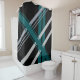 Retro Stripes in Shades of Grey and Forest Green Teal on Black Background Personalized Shower Curtain features cool retro crisscrossed stripes on a diagonal in forest green teal and medium grey and silver grey on a black background. You can personalize this shower curtain by changing the colours or stripes, moving them around, or removing the stripes entirely, as well as adding your own images and text. See coordinating and matching personalized home decor in our store at zazzle.com/DIYDecor.