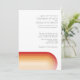 A modern invitation with sunset colours and a retro stripe curved arch. The semi-casual wording can be changed from the parents invitation to the bride and groom. A place for a wedding website qr code is included on the back of the casual invitation.