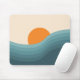 Abstract colourful retro style seascape illustration with blue sea waves and sun decoration at sunset for everybody who likes nature and waiting for summer adventures.