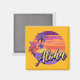 Grunge retro summer illustration with "Aloha" text design and palm tree, tropical flowers, sun, sea and rainbow decoration for summer lovers