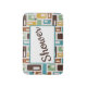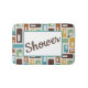 Step out of the shower in style with this fun bathmat that features a trendy retro-style atomic capsules pattern in shades of aqua, green, gold, and brown accented with customizable text that says, "Shower." Modify the text with your own sentiment to create a one-of-a-kind gift for new homeowners, a unique accessory for your own home, or a fun addition to a dorm room shower.