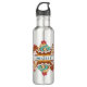 Personalized water bottle with a bunch of delicious looking cupcakes with swirls and cherries and yummy frosting. Illustrated in a classic retro style. Colours include retro green, red, blue and cream.
