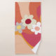 Abstract colourful retro style design with blooming flowers and yellow, orange and pink waves decoration on pastel pink background