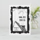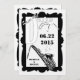 Make sure your friends and loved ones are there for your wedding with these Retro Style Jazz Save the Date cards in Black and white. The cards are in the style of a retro poster, and feature a saxophone with musical notes, two glasses toasting, and the whimsical phrase "dance eat drink celebrate / live love laugh sing" to add a decorative touch.