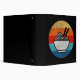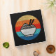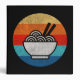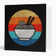 Retro style ramen illustration with noodles and chopsticks on a colourful retro style sunset background in yellow, orange, red, turquoise and blue colours