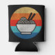 Retro style ramen illustration with noodles and chopsticks on a colourful retro style sunset background in yellow, orange, red, turquoise and blue colours