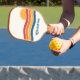 Designed for both style and functionality, our paddle boasts a durable construction that ensures optimal performance on the court. The retro-inspired design adds a touch of nostalgia to your game while the vibrant colours stand out on the pickleball court.