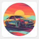 Retro Styled Sports Car with Sunset Background Square Sticker