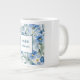 Retro Stylish Elegant Plain Blue White Flowers Large Coffee Mug