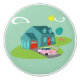 This Retro Suburban House Ceramic Pull pattern features a typical American home in a typical American neighbourhood, circa 1950. A teal home with a peacock blue roof, and turquoise windows are perfectly offset by a vibrant red front door and garage door. A classic pink, 1950’s finned convertible car is parked on the picturesque driveway. Kitschy, plastic, pink flamingos look right at home on the boomerang shape of freshly mowed green grass resting on a jade background. The manicured lawn is landscaped with whimsical trees. Kidney bean shaped clouds and a yellow sunburst of a sun let you know it’s just another glorious day in mid century modern suburbia.