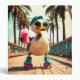 This duck is on a roll. With roller skates, a slushy, and big retro shades, he is bringing 90s beach vibes and comic cool to your summer. Perfect for animal lovers, skaters, or anyone ready to shake summer fun.