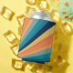 Retro style sun rays geometric pattern illustration with yellow, orange, blue and turquoise stripes decoration