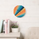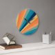 Retro style sun rays geometric pattern illustration with yellow, orange, blue and turquoise stripes decoration