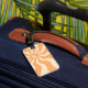 Luggage tag featuring a retro, pale orange sun with radiating rays and your monogram initial.
