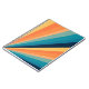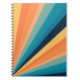 Retro style sun rays geometric pattern illustration with yellow, orange, blue and turquoise stripes decoration