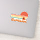 Retro, seventies inspired sticker in burnt orange, with the words sunkissed and retro sun