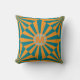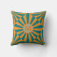 Retro Sunbeam Orange Blue Striped Cool Monogram Throw Pillow
