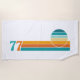 Retro vintage style sunset on extended horizontal stripe design with 77 (1977) typography in the style of the 1970s.