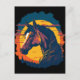 Illustration portrait of a horse in front of a beautiful retro sunset.