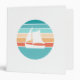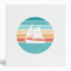Retro 1980s style sunset design in a distressed effect with sailboat illustration centre front.