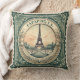 Retro Sunset French Eifel Tower Paris France Green Throw Pillow