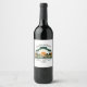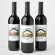 Create personalized family reunion wine labels for your outdoorsy theme party. The design features a vintage sunset landscape with mountains, a pine tree forest and a lake on a white background. Type your family name and year via the template to personalize them.