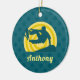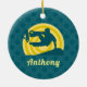 Retro Sunset Skateboarding Theme Custom Name Teal Ceramic Ornament