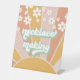 Retro Sunshine Groovy Necklace making party activity sign with boho daisies.
