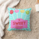 Retro Sweet Shop Pastel Candy Lollipops on Stripes Throw Pillow