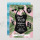 Get ready to make a splash with this retro swimsuit pool party invitation and breezy palm background. Great for birthdays, bridal showers, or summer fun in the sun. Personalize with your party details.