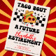 Let's Taco 'bout a Retirement with our festive invitation! Celebrate this milestone achievement in style with our fun and flavorful design, featuring vibrant retro taco design. Customize every detail to make this invitation uniquely yours and set the stage for a memorable retirement fiesta! Order now and let the festivities begin!