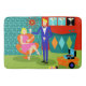 Ce rétro tapis de bain de couples de Martini ressemble à une scène hors d'une comédie romantique. L'arrangement de ce style des années 1960, conception minimaliste d'art est une maison d'une manière élégante décorée, de la moitié du siècle ou un appartement moderne. La fonte est un couple attrayant appréciant une soirée remplie de conversation de scintillement, de bonne musique et de boissons sans fond. La salle comporte un plancher vert, et un mur de briques d'aqua et de sarcelle d'hiver. Se reposant confortablement dans un mod, la chaise orange d'oeufs est une belle femme. Sa robe rose lumineuse est juste assez courte pour montrer ses gams bien faits. Avec la vague d'une main, cette beauté blonde a l'attention immédiate de son admirateur masculin. Son compagnon d'une chevelure juste porte un costume bleu, une chemise blanche et une cravatte noire d'arc. Dans des ses mains, il tient deux, verres en cristal de martini avec les olives de flottement. Ne vous inquiétez pas. Il offre un à son amie de dame. La paire a une heure si délicieuse que ni l'un ni l'autre ne prend à avis de l'heure montrant sur le kitschy, rouge, horloge de starburst sur le mur de briques derrière elles. Sur un mur rouge ardent enfoncé, il y a film Martini de trois classiques les copies étirées de toile, aussi fournies par le magasin de Zazzle de StrangeLittleOnion (signe, signe !) deux des milieux de turquoise de caractéristique d'impression et on est sur un arrière - plan noir dramatique. Centré sous les copies est un mini-bar élégant. L'avant de la barre turquoise a trois diamants de harlequin, dans les nuances de l'orange, de la turquoise et du vert. Nous pouvons voir les silhouettes des verres de martini se reposant sur le plan de travail. À travers la salle, un tabouret orange tient un tourne-disque bleu et noir, portatif. Sur le plancher, nous voyons les disques vinyle et une couverture jaune lumineuse d'album. Ce duo attrayant a une heure si délicieuse que ni l'un ni l'autre ne prend à avis de l'heure montrant sur le kitschy, rouge, horloge de starburst sur le mur de briques derrière elles.