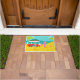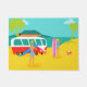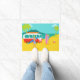 Chaque jour peut être un jour à la plage avec ce rétro tapis de porte de couples de surfer. Le style des années 1960, caractéristiques de conception minimalistes d'art un amusement-affectueux, exposent au soleil adorer, couple de recherche de frisson tout prêt à attraper une vague. L'arrangement est une oasis tropicale, d'île avec une plage du sable d'or, un balancement, des palmiers verts, un scintillement, océan de bleu de paon, et un ciel d'aqua. Dans la distance, nous pouvons voir une île volcanique turquoise, qui est dormante pour l'instant. De retour sur la plage, nous ne pouvons nous empêcher de noter le tour doux qui a apporté nos couples à leur destination rêveuse. C'est un fourgon moderne, rouge et blanc de la moitié du siècle avec une planche de surf orange et jaune attachée jusqu'au dessus. Bien que nous ne puissions pas être sûrs, il est juste pour supposer que l'intérieur du fourgon comporte super, pose de tapis de tapis à longs poils et l'odeur de l'encens ! Le type de surfer et le bébé de plage font soleil-embrasser l'assortiment se bronze, les cheveux soleil-blanchis, et le bleu, les maillots de bain modelés par tiki. Le type de surfer tient une planche de surf bleue. Le bébé de plage se tient près de elle deux-a modifié la tonalité, planche de surf rose. Se trouvant tout près, il y a un ballon de plage rouge et blanc, attendant pour accomplir son destin d'été. Attrapez quelques vagues et partagez un certain amour avec cette conception kitschy d'été !