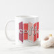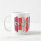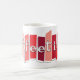 Appréciez votre style de pause-café d'après-midi rétro avec cette tasse de café inspirée par moitié du siècle avec des images graphiques de style atomique aux nuances du rouge et du rose. La tasse indique le "coffeetime" dans une rétro police de style de wagon-restaurant, et les couleurs d'amusement qui vous rapporteront à temps.