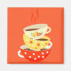 A retro cute, vintage image illustration of three retro style old fashioned tea cups stacked on top of one another against a bright orange on trend background. This whimsical design is for tea and coffee lovers everywhere.