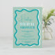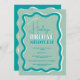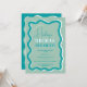 Retro teal blue curve squiggle wavy bridal shower invitation