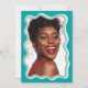 A cool bold name bridal shower invitation with Retro boho teal blue curve squiggle wavy wedding photo. All the text, names and background colours are customizable for you to mix and match your wedding suite.