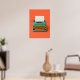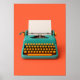 A stunning, high-contrast digital art print featuring a vintage manual typewriter rendered in a striking teal and bright yellow-orange color scheme against a bold, monochrome orange background. This artwork perfectly blends nostalgic charm with a modern, vibrant pop aesthetic. It is an ideal piece for creatives, writers, editors, or anyone looking to add a lively, retro-futuristic splash of color to their office, studio, or living area.