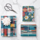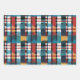 Retro Teals Plaid Floral and Line Set of 3 Wrapping Paper Sheet