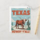 Send a big 'Howdy Y'all!' from the Lone Star State with this iconic Texas postcard designed in a cool retro stamp style! This eye-catching vintage illustration perfectly captures the spirit of Texas, USA, featuring a magnificent longhorn cattle front and centre. The classic desert landscape with towering cacti and wide-open skies completes this quintessential Western scene