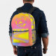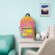 You'll be easy to keep up with in a crowd while wearing this brightly coloured retro tiedye design. The front is a more solid design in blues, pinks, oranges and yellow and has a coordinating but contrasting peace symbol at the top. The amount of yellow has been increased on the pouch, sides and tops, with swirls to add some serious contrast to the overall design.