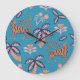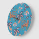 Retro tiger, palm tree, flower pattern large clock