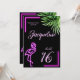 Retro tropical neon flamingo sweet 16th birthday invitation