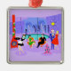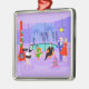 Cet Ornement de Noël Tropical est assez festif pour égayer les perspectives de vacances de n'importe qui ! Le dessin animé présente le type de fête de Noël extrêmement sophistiqué qui n'est normalement visible que dans les films de Noël des années 1960. Un salon moderne du milieu du siècle est rempli de fêtards qui apprécient la décoration chic et violette. Une jolie femme en uniforme de domestique française porte un plateau de martinis. Elle se tient à côté d'une cheminée rouge à cônes avec un feu rugissant. Trois bas verts sont accrochés avec soin par la cheminée mod. Au centre de la pièce, un beau couple s'installe dans des chaises à oeufs d'orange. La femme porte une robe festive et verte. L'homme porte un costume noir avec une cravate rouge. Ils tiennent chacun un martini. Un autre couple devient cosy sous un lustre suspendu, jaune, Spoutnik. Le distingué homme aux cheveux gris porte un costume bleu, une chemise bleu clair et une cravate rouge. Il porte aussi un chapeau de Père Noël et tient un martini dans chaque main, montrant au monde que ses jours de fête sont loin d'être terminés. Son compagnon est une blonde en forme dans une robe rouge étonnante. M. Distinguished ferait mieux de faire attention parce qu'elle tient une pointe de faux-pied dans sa main. A l'avant de la pièce, un sapin de Noël kitsch et rose, orné de turquoises ornements et d'une étoile jaune. Derrière cette scène, on peut voir à travers des murs en verre du sol au plafond. La scène extérieure dispose d'une piscine ronde et turquoise. On peut voir la silhouette violette d'une femme plongeant ses jambes dans l'eau. Entre les murs violets et en pierre, il y a des silhouettes de palmiers ornés de décorations et de lampes de Noël. Les silhouettes de danses et de fêtards parlants sont également visibles. S'il y a une chose que cela prouve, c'est que, tandis que les gens qui vivent dans des maisons en verre ne devraient pas jeter de pierres, ils devraient certainement jeter des fêtes !