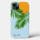 Retro Tropical Sun Palm Leaves Blue Minimal Name Case-Mate iPhone Case