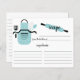Fun retro bridal shower kitchen recipe cards featuring a turquoise blue polka dot apron with kitchen tools & rolling pin. The front of our recipe card offers room for a recipe title, from the kitchen of and ingredients space. Flip our recipe card over to view our lined back for recipe directions. Visit our shop for matching bridal shower invitations Available in our shop in a large assortment of popular wedding shower colours. Perfect bridal shower invitation insert for a stock the kitchen bridal shower.