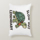 A cozy rectangular pillow featuring a retro turtle celebrating calm strength and patience.