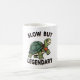 A minimalist white mug featuring a retro turtle and legendary slow-life quote.